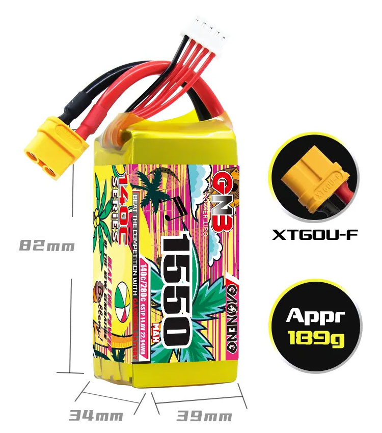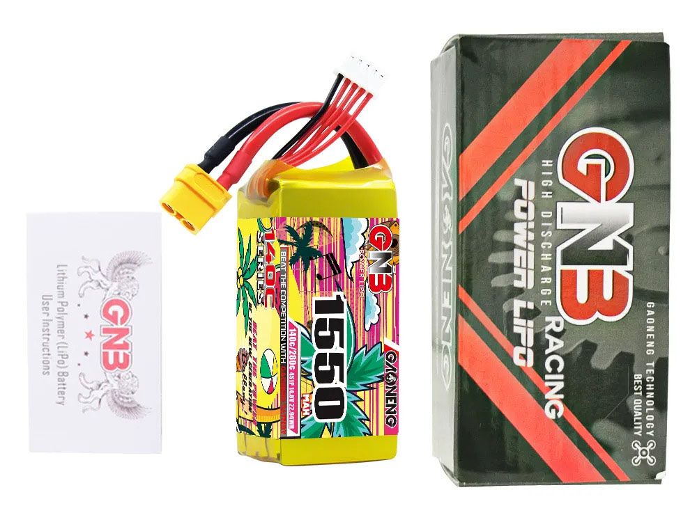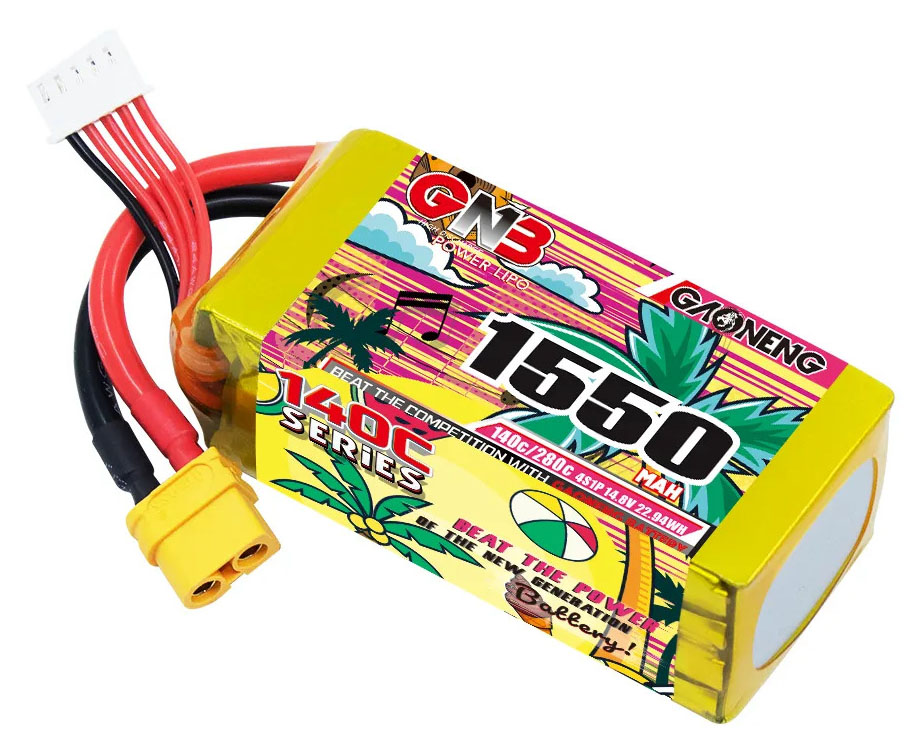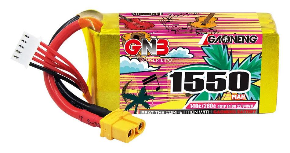 Аккумулятор от компании Gaoneng. Имеет высокую скорость разряда 140С, подойдёт для 180-330 мм дронов.