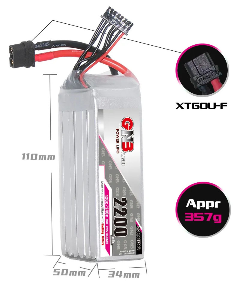 Аккумулятор GNB 2200мАч 6S 120C LiPo (XT60)
