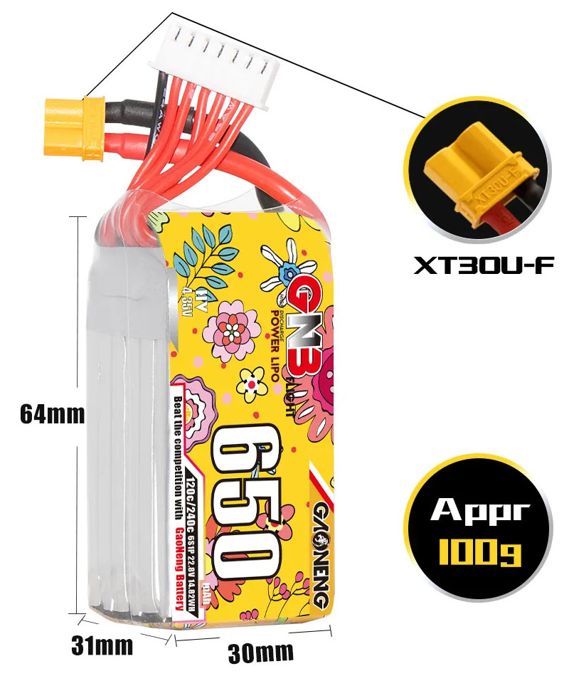 Аккумулятор GNB 650мАч 6S 120C LiHV (XT30)