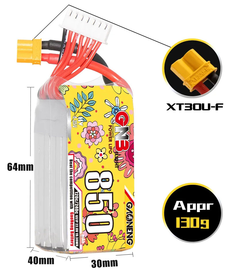 Аккумулятор GNB 850мАч 6S 120C LiHV (XT30)