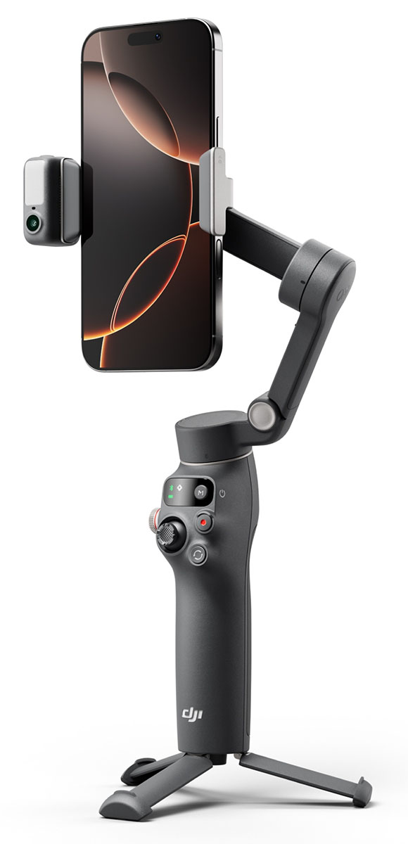 DJI Osmo Mobile 8 получил удобную рукоять, встроенные удлинитель и трипод, а также магнитное крепление Quick-Release — смартфон можно прикрепить или снять за секунду. Дополнительные аксессуары (микрофон, свет, крепления) расширяют возможности для съёмки.