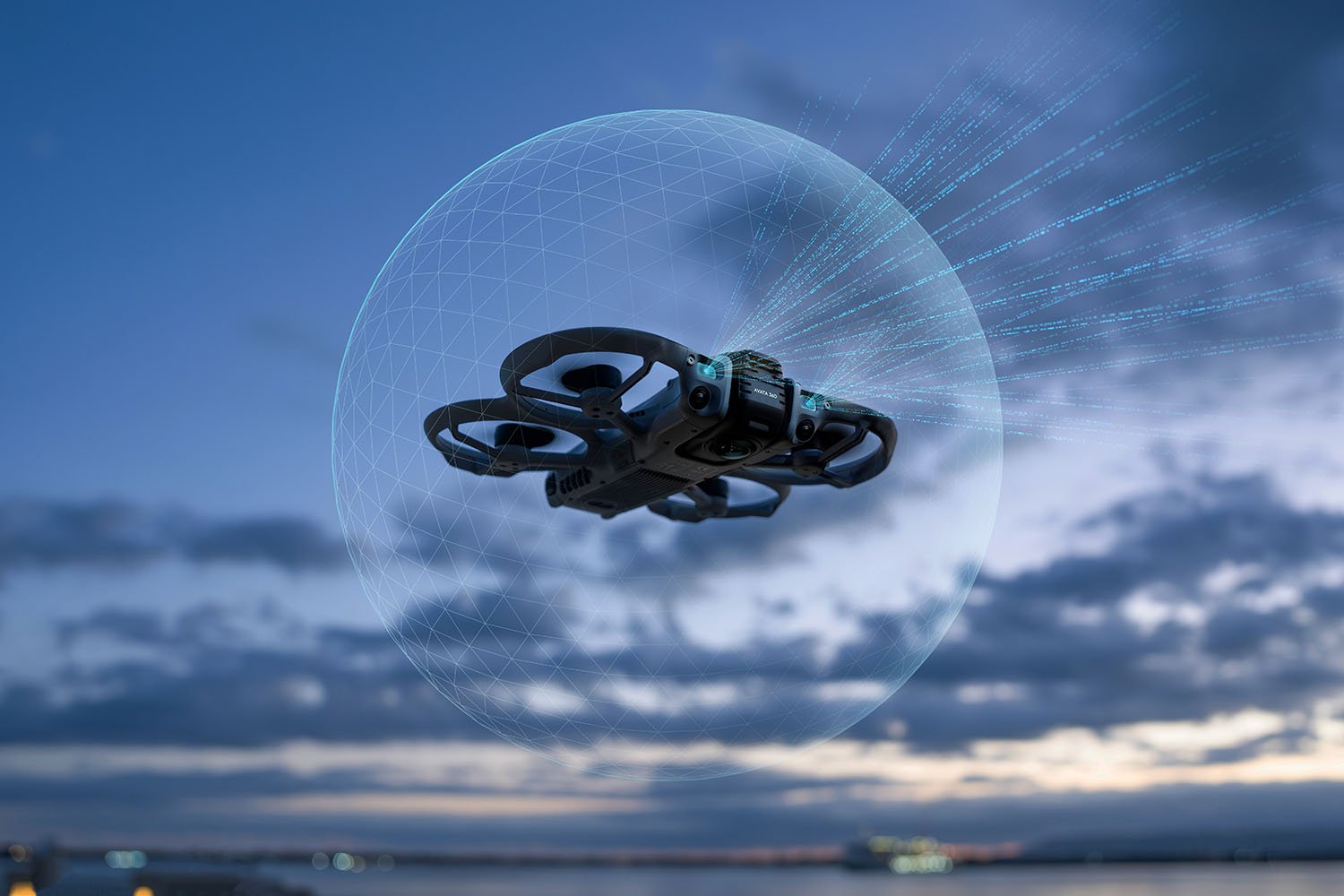 Помимо фирменной физической защиты пропеллеров, которая позволяет дрону отскакивать от препятствий, Avata 360 получила полноценную систему всенаправленного облёта преград. Более того, спереди установлен лазерный дальномер (LiDAR), который обеспечивает надёжное распознавание объектов даже ночью. Ваш полёт безопасен в любых условиях.