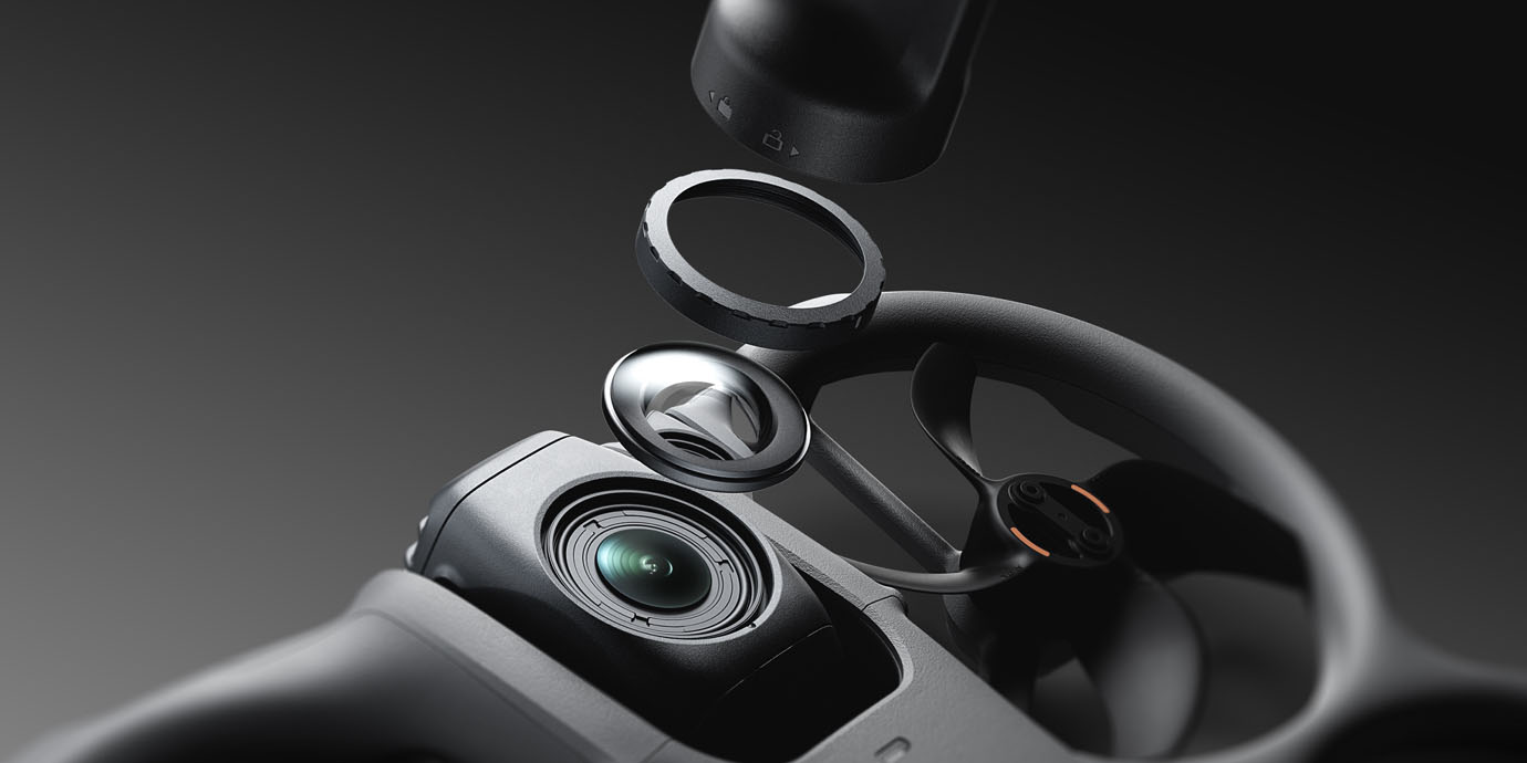Понимая специфику активных FPV-полётов, инженеры DJI предусмотрели возможность лёгкой замены линз. Если выпуклые стёкла 360-градусных объективов поцарапаются при пролёте через ветки или при жёсткой посадке, вам не придётся ремонтировать всю камеру — достаточно просто установить новый комплект сменных защитных линз.