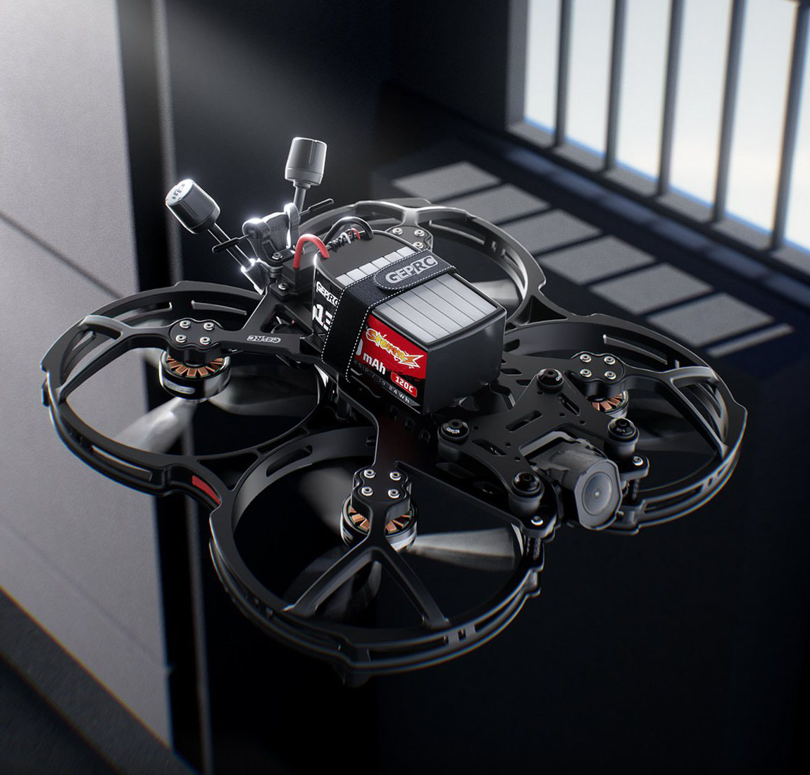 - Мощная силовая установка (6S): Оснащён новыми моторами SPEEDX2 2105.5 2650KV и пропеллерами HQProp D-T90MM. В связке с полетным контроллером GEP-F722-45A AIO V2 дрон обладает взрывной тягой и отличной управляемостью.