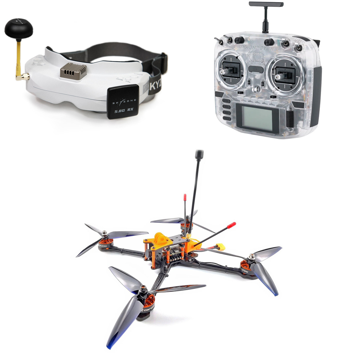 Этот комплект включает: 1 × 109601 Комплект аккумуляторов RadioMaster 3200мАч 18650 для TX16S / TX12 / Boxer / Pocket / MT12 1 × 109178 Аппаратура управления RadioMaster Boxer M2 (Прозрачный корпус) (ELRS) (ELRS) 1 × 109046 Аккумулятор CNHL Black Series 2000мАч 4S 100C LiPo (XT60) 1 × 109975 Приёмник GEPRC ELRS Nano PA100 (2,4 ГГц) 1 × 106741 Аккумулятор GNB 3000мАч 2S 5C LiPo для очков Skyzone / Fatshark (XT60, DC5.5) 1 × 106609 FPV-очки Skyzone SKY02O (Белый) 1 × 107667 Квадрокоптер DarwinFPV Darwin129 7" Analog (PNP) 1 × 107271 Зарядное устройство Ultra Power UP8