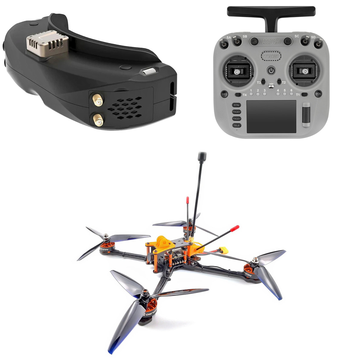 Этот комплект включает: 1 × 109601 Комплект аккумуляторов RadioMaster 3200мАч 18650 для TX16S / TX12 / Boxer / Pocket / MT12 1 × 110526 Аппаратура управления RadioMaster TX15 (ELRS) (Серый) 1 × 107271 Зарядное устройство Ultra Power UP8 1 × 109802 FPV-очки Skyzone SKY04O Pro (Чёрный) 1 × 107667 Квадрокоптер DarwinFPV Darwin129 7" Analog (PNP) 1 × 110090 Приёмник GEPRC ELRS DUAL Diversity (915/868 МГц) (ELRS 868 МГц) 1 × 109044 Аккумулятор GNB 1850мАч 4S 100C LiPo (XT60) 1 × 106741 Аккумулятор GNB 3000мАч 2S 5C LiPo для очков Skyzone / Fatshark (XT60, DC5.5)