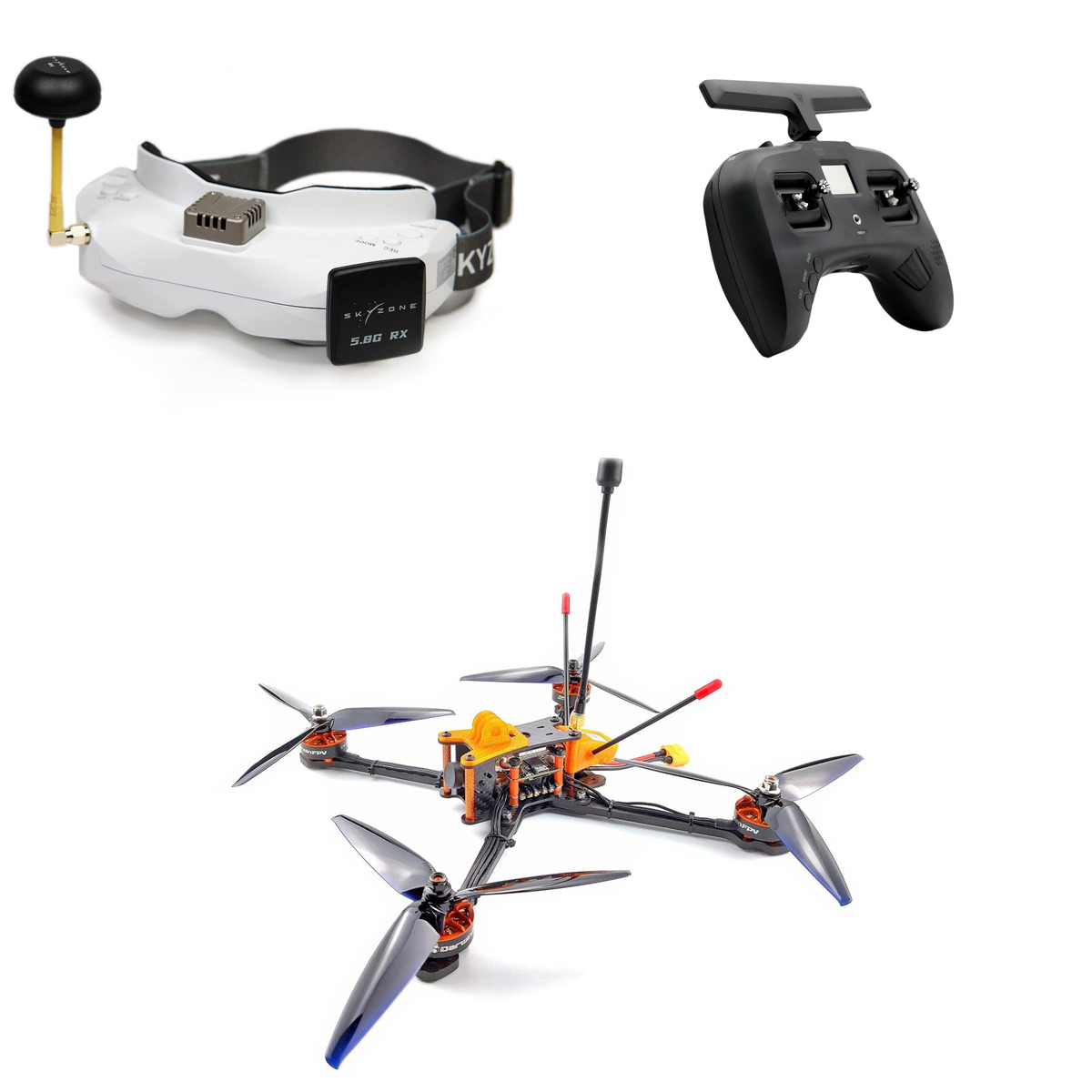 Этот комплект включает: 1 × 109045 Аккумулятор GNB 2200мАч 4S 120C LiPo (XT60) 1 × 106621 Многофункциональное зарядное устройство ToolkitRC M6DAC 1 × 107667 Квадрокоптер DarwinFPV Darwin129 7" Analog (PNP) 1 × 105790 Приёмник TBS Crossfire Nano RX (SE) 1 × 106741 Аккумулятор GNB 3000мАч 2S 5C LiPo для очков Skyzone / Fatshark (XT60, DC5.5) 1 × 105785 Аппаратура управления TBS Tango 2 Pro V4 1 × 106609 FPV видео-очки Skyzone SKY02O (Белый)