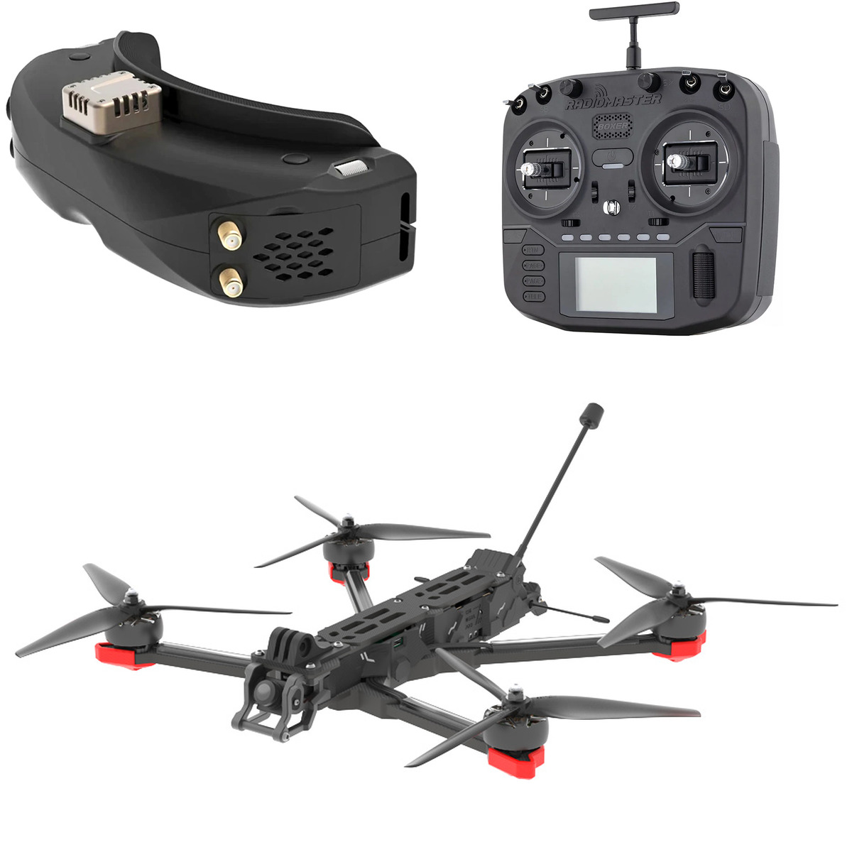 Этот комплект включает: 1 × 110546 Аккумулятор GNB 5200мАч 6S 110C LiPo (XT60) 1 × 106811 Набор ELRS ES900TX Micro + ES900RX (915/868 МГц) (Happymodel) (ELRS 868 МГц) 1 × 108338 Аппаратура управления RadioMaster Boxer M2 (4-в-1) 1 × 107271 Зарядное устройство Ultra Power UP8 1 × 109802 FPV-очки Skyzone SKY04O Pro (Чёрный) 1 × 109601 Комплект аккумуляторов RadioMaster 3200мАч 18650 для TX16S / TX12 / Boxer / Pocket / MT12 1 × 106741 Аккумулятор GNB 3000мАч 2S 5C LiPo для очков Skyzone / Fatshark (XT60, DC5.5) 1 × 108698 Квадрокоптер iFlight Chimera7 Pro V2 Analog (PNP (без приёмника))