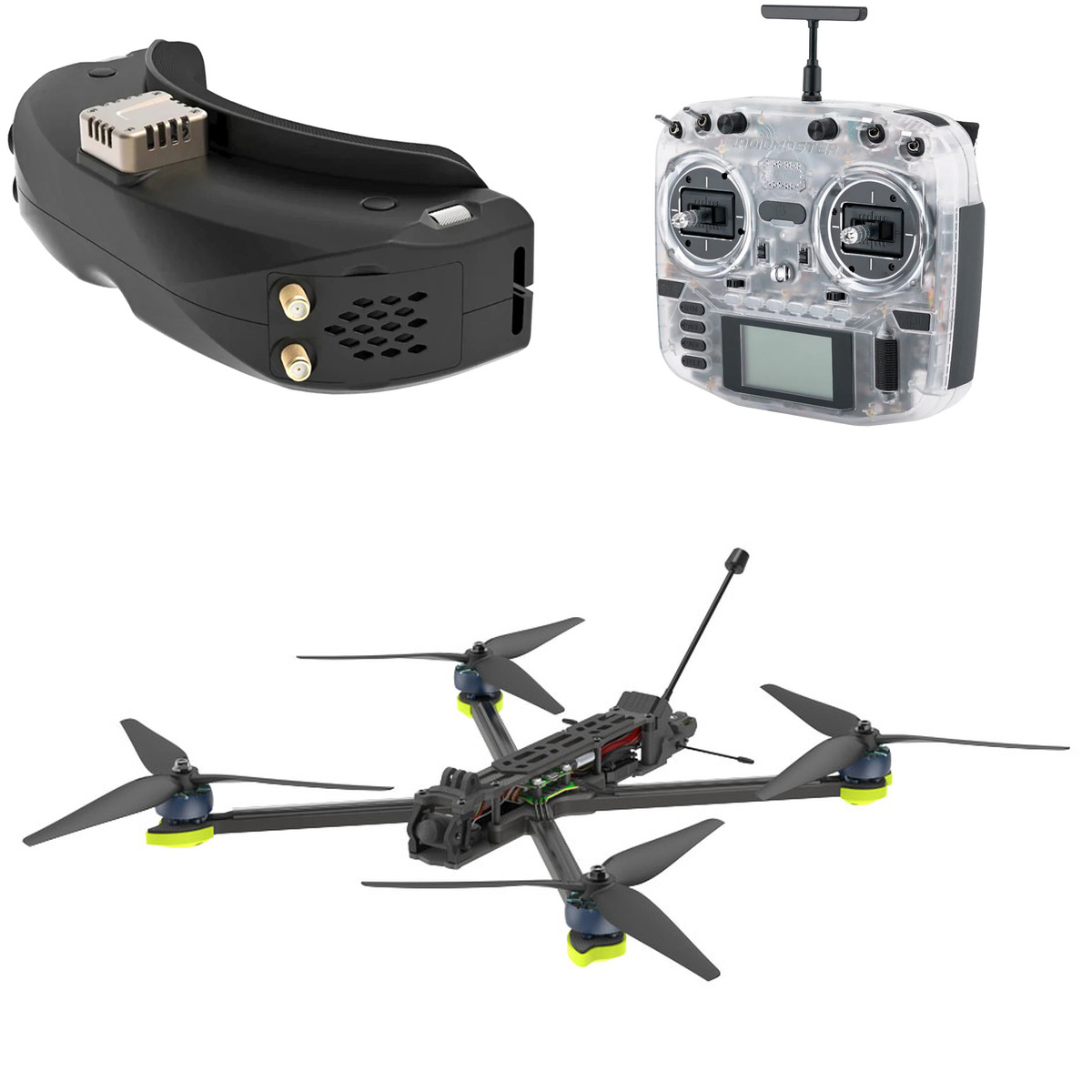 Этот комплект включает: 1 × 110546 Аккумулятор GNB 5200мАч 6S 110C LiPo (XT60) 1 × 107271 Зарядное устройство Ultra Power UP8 1 × 109975 Приёмник GEPRC ELRS Nano PA100 (2,4 ГГц) 1 × 109178 Аппаратура управления RadioMaster Boxer M2 (Прозрачный корпус) (ELRS) (ELRS) 1 × 106741 Аккумулятор GNB 3000мАч 2S 5C LiPo для очков Skyzone / Fatshark (XT60, DC5.5) 1 × 108922 Квадрокоптер iFlight Nazgul XL10 V6 Analog (PNP (без приёмника)) 1 × 109601 Комплект аккумуляторов RadioMaster 3200мАч 18650 для TX16S / TX12 / Boxer / Pocket / MT12 1 × 109802 FPV-очки Skyzone SKY04O Pro (Чёрный)