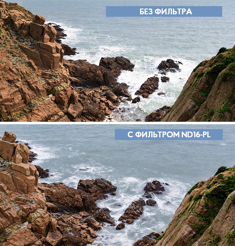 Нейтрально-поляризационный фильтр пропускает 4 ступени силы света, позволяя расширить время экспозиции. При помощи оптики ND16/PL можно получить естественное размытие движения во время съемки. А поляризации линзы гарантированно снизит интенсивность бликов и отражений, ухудшающих качество фотографий и видеороликов.