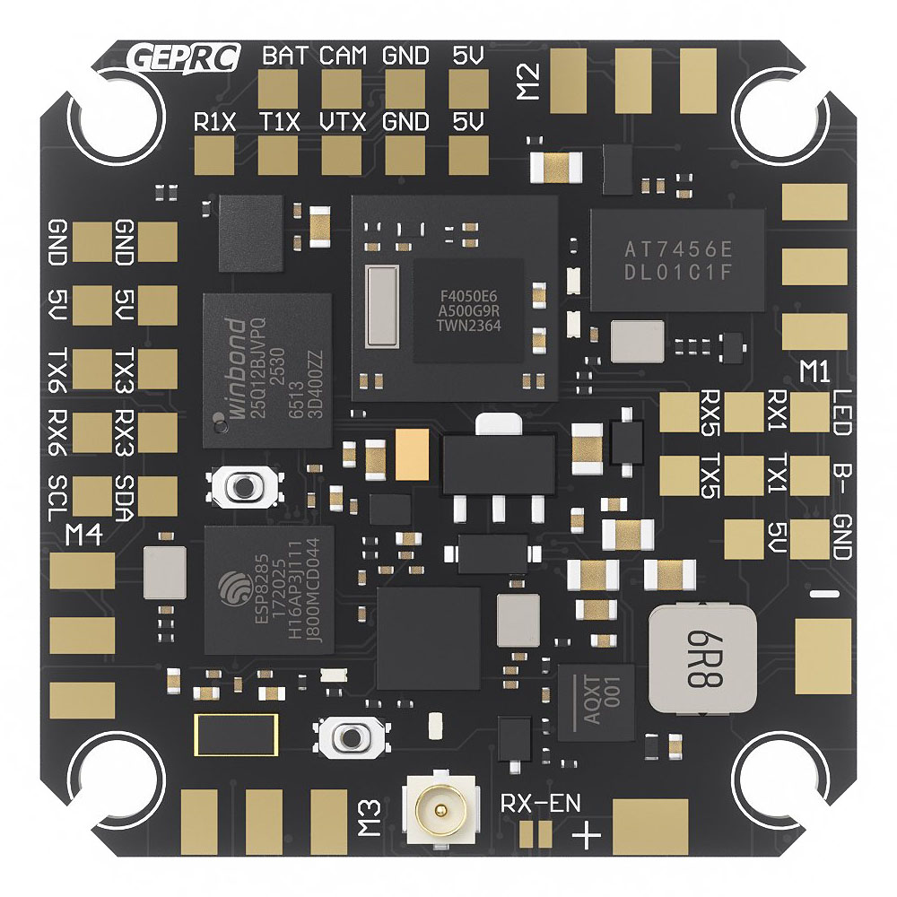 Полётный контроллер GEPRC TAKER F405 20A AIO — это компактное решение весом всего 7 граммов, созданное специально для микро-дронов размером от 1,6 до 2,2 дюймов. Плата объединяет в себе мощный процессор STM32F405, гироскоп ICM42688-P, встроенный приёмник ELRS 2,4 ГГц и регулятор оборотов на 20 А (в пике 25 А) с поддержкой аккумуляторов 2–4S LiPo.