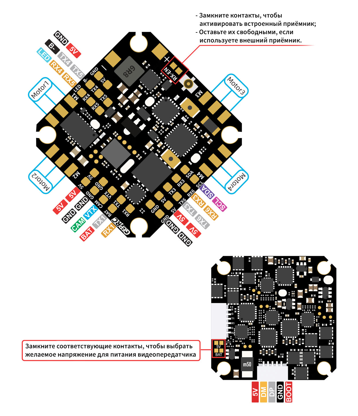- Протокол ESC: Dshot600, Oneshot, Multishot