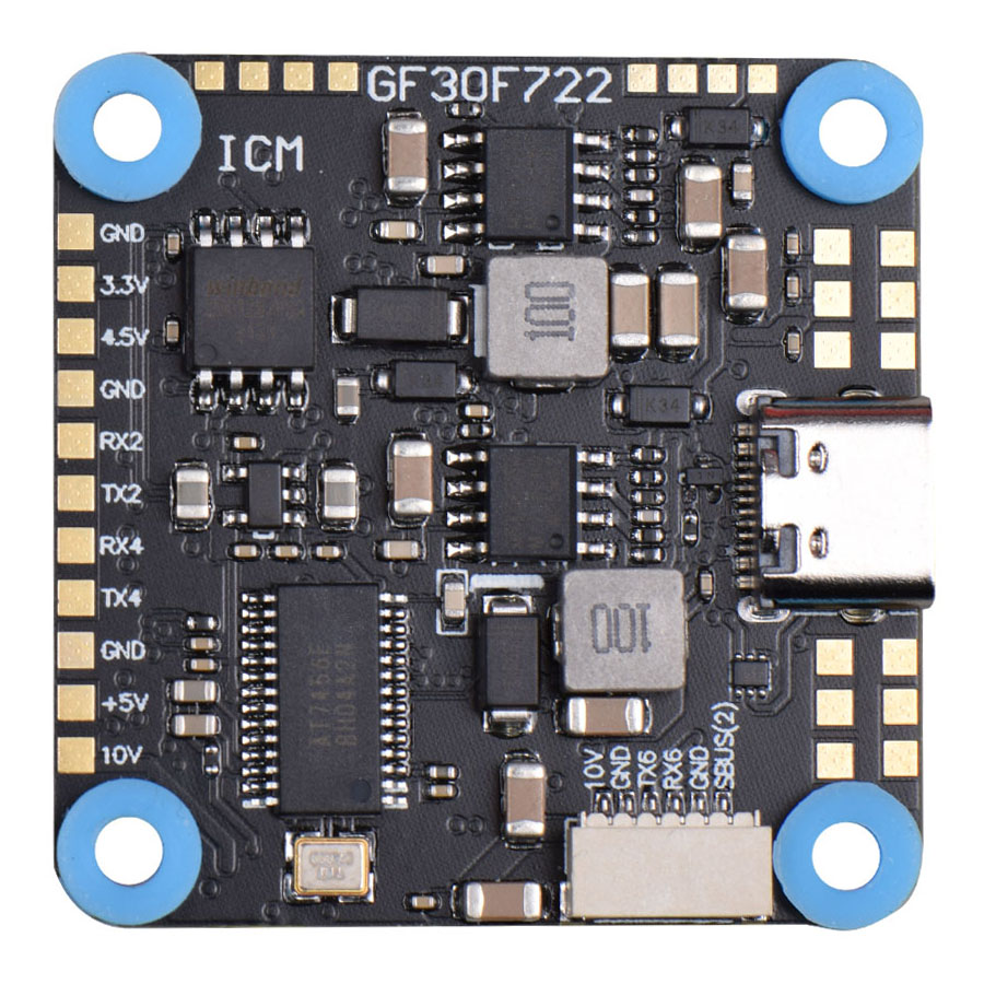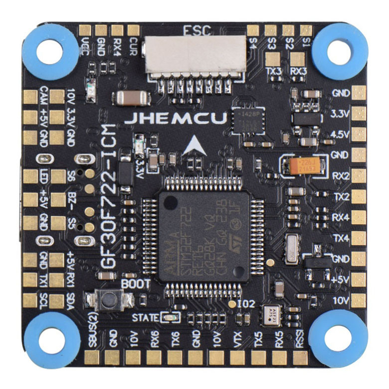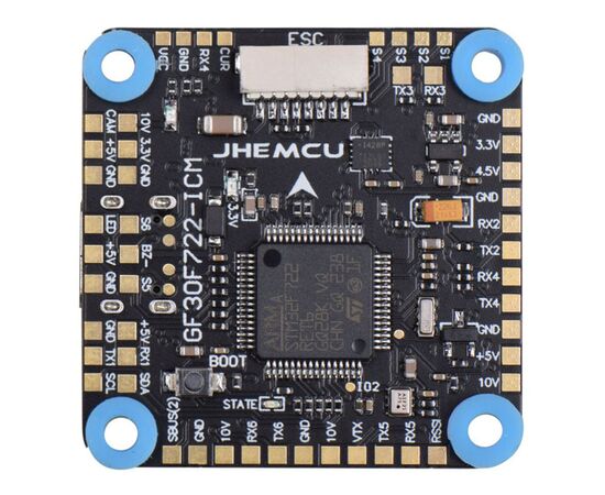 JHEMCU GF30F722-ICM — это мощный полётный контроллер на базе процессора F7, разработанный для FPV-дронов, где важны надёжность и скорость обработки данных.