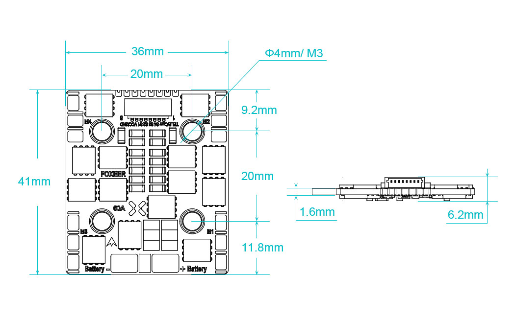 Оригинальное название: Foxeer Reaper F4 Slim Mini ESC 128K 60A BL32 4in1 9~40V 20mm M3