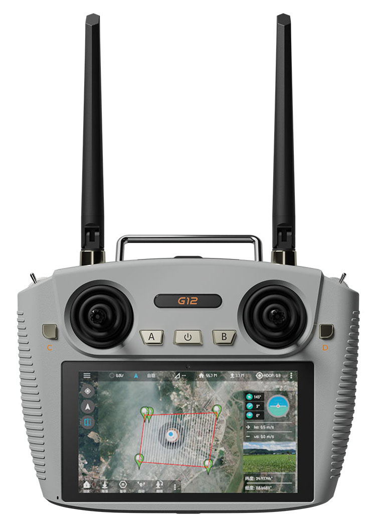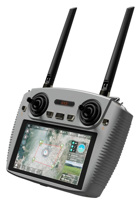 С аккумулятором 10 000 мАч, временем работы до 8 часов и быстрой зарядкой через USB-C пульт G12 подходит для длительных миссий. Вес устройства — всего 683 г, что делает его удобным для переноски и работы в полевых условиях.