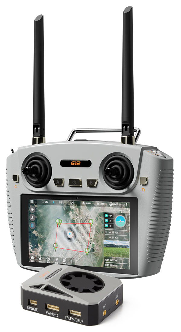 Skydroid G12 — это профессиональная система управления и видеопередачи для промышленных дронов. Она объединяет пульт дистанционного управления, телеметрию и передачу HD-видео в одном компактном устройстве.