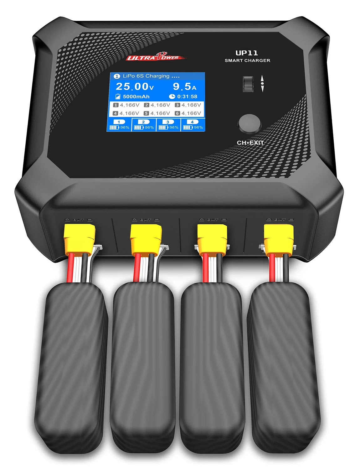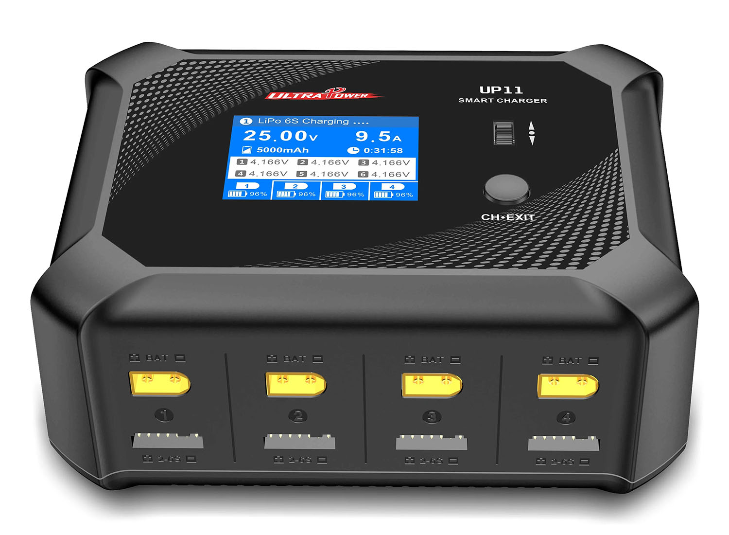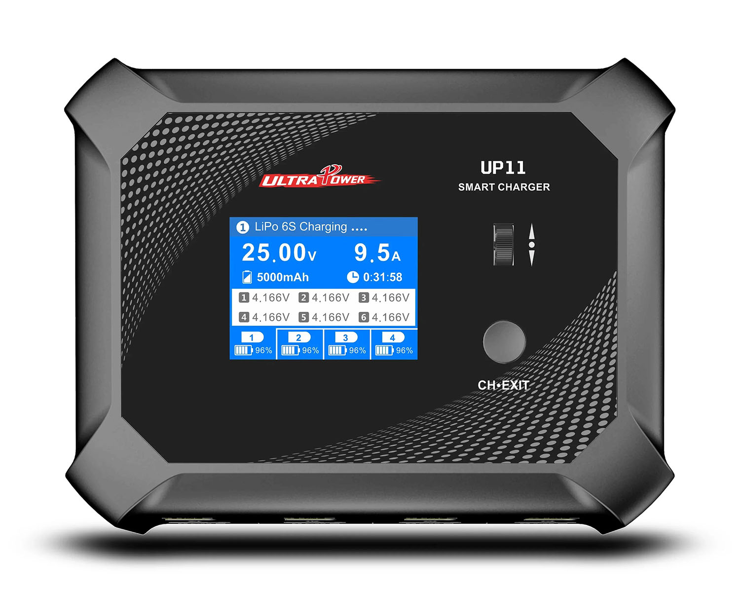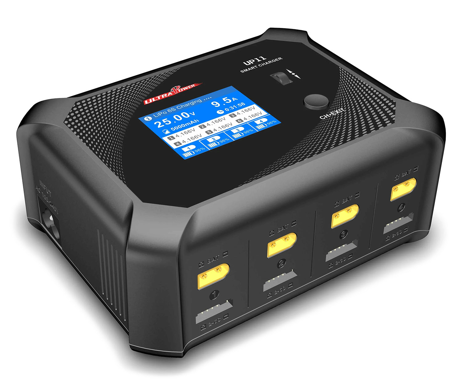 Ultra Power UP11 — это универсальное интеллектуальное зарядное устройство с четырьмя независимыми каналами, которое можно питать как от сети переменного тока (100–240 В), так и от источника постоянного тока (11–18 В).